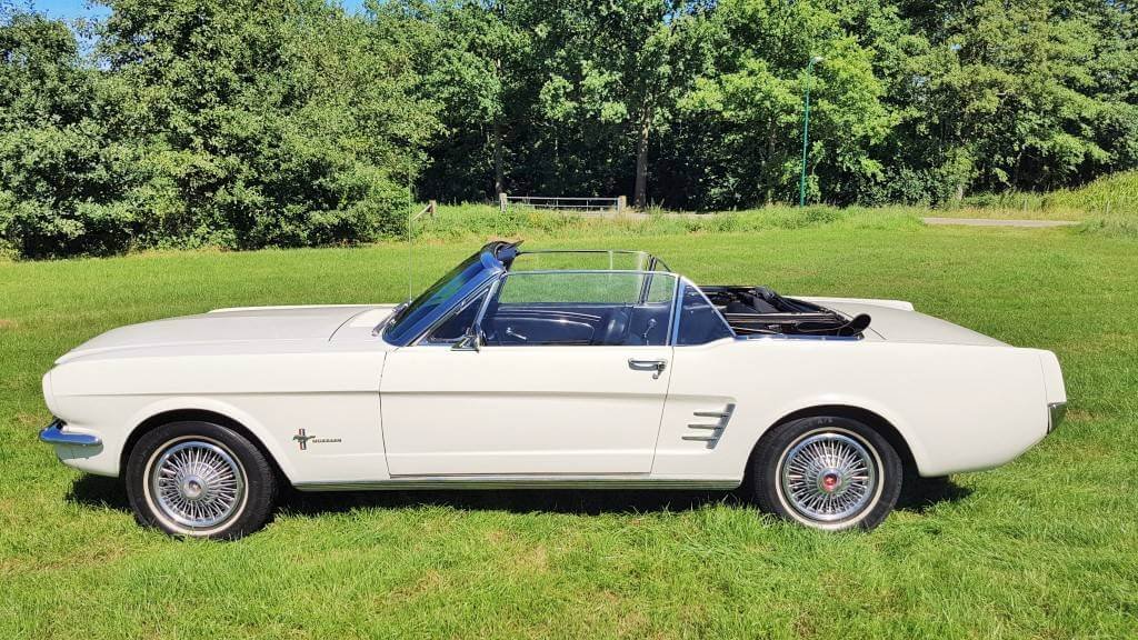 Dit is de mooiste klassieke Ford Mustang trouwauto van Nederland. Jullie mogen zelf rijden in deze mooie trouwauto. Deze mooie classic Ford Mustang is er voor iedereen die van stoer en opvallend houdt. Deze beauty rijdt heerlijk en verkeert in nieuwstaat! Het rijden in deze klassieker is een droom voor velen. Bijna iedereen vindt dit een schitterende auto. En dat is niet voor niks! Onze Ford Mustang is een trouwauto waarvan het cabriodak kan worden opengeklapt, ook wel bekend als een cabriolet. De open dakconstructie maakt het mogelijk om in stijl te rijden en tegelijkertijd genieten van het weer en de omgeving. Veel bruidsparen kiezen voor een cabrio Ford trouwauto voor een unieke en romantische touch aan jullie trouwdag.